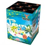 Эффект: Красные, зеленые и пурпурные звезды раскрываются зелено-пурпурными пионами, серебряным мерцанием, красными хризантемами, золотым трещащим мерцанием.