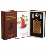 Размер: 145х220х55 мм      Наполнение: фляжка металлическая с кожаной вставкой 8-9 унций, 2 рюмки и воронка (флокированный ложемент). Книга штоф с фляжкой