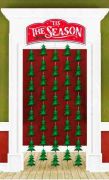 Новогоднее украшение-занавес на дверь в виде баннера с надписью и занавесом из 5 вертикальных гирлянд с зелеными фольгированными елочками.Размер декорации 99 x 195,5см, елочки закреплены на прозрачной леске.