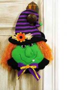 Забавная фетровая ведьма сразу укажет дверь, где отмечают Хэллоуин. Размер украшения 37 см, также можно использовать как баннер для украшения стен или подарок гостям вечеринки.