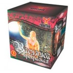 Эффект: Зеленые, красные и синие звезды раскрываются красными георгинами в зеленом и серебряном мерцании, серебряными кокосами в красном мерцании, золотыми кокосами в синих жемчужинах. В финале залп нескольких зарядов - золотая ива переходит в эффект тысячи хризантем.