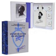 Наполнение: фарфоровая фляга с изображением Ф.Э.Дзержинского, три фарфоровые рюмки.