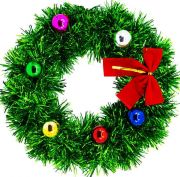Подвесной фольгированный декор в виде круглого венка, украшенного яркими разноцветными шариками и бантиком. Размер 25см.