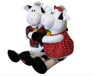 Сидя в обнимку, влюблённая парочка споёт для Вас замечательную романтичную песню о коровьей любви «Му-Му» мужским и женским голосом. Во время исполнения Бычок и Коровка открывают рты синхронно словам песни. Бычок двигается в левую и правую стороны. Эта игрушка отлично подойдет в подарок, для людей старшего возраста, её можно подарить мужчине, женщине и семейной паре на юбилей.