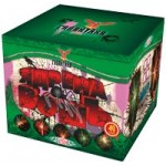 Эффект: Разноцветные звезды со свистом раскрываются красными и пурпурными кокосами в разноцветных мерцающих пионах, мерцающие ивы с эффектом 1000 хризантем