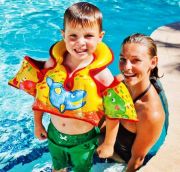 Жилет надувной для детей от 3 до 6 лет весом 18-30кг. Надувной жилет имеет три надувных отсека. Для уменьшения натирания внутренняя сторона жилета и нарукавников обшита тканью.