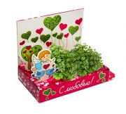 Открытка представляет собой коробочку, с одной стороны есть место для написания ваших пожеланий. Откройте открытку, высыпьте семена в контейнер, где находится специальный материал для проращивания. уже через 3-4 дня в открытке вырастет пышный газон из зелени.