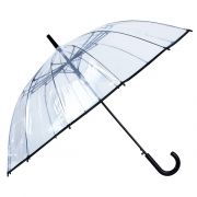 Полуавтоматический зонт-трость с прозрачным куполом и тонкой чёрной окантовкой. Прочный металлический шток и укрепленные спицы способны выдержать большое количество открываний и закрытий, не боятся даже сильного ветра. Элегантный аксессуар - уместное дополнение к деловому или классическому образу.