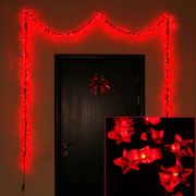450 красных светодиодов на зеленом проводе в пластиковых прозрачных насадках в форме звезд.