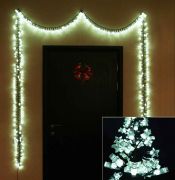 450 белых светодиодов на зеленом проводе в пластиковых прозрачных насадках в форме звезд.